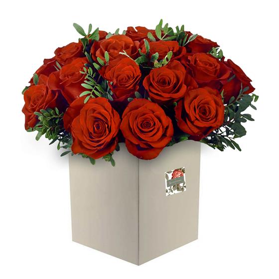 12, 18, 24 or 36 long stemmed velvety red roses combines beautifully with mixed foliage, presented with a complementary gift box. Available in four different colour options, red, pink, white or yellow.